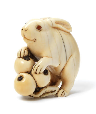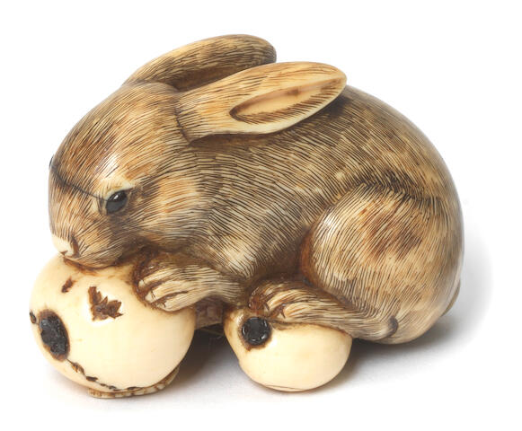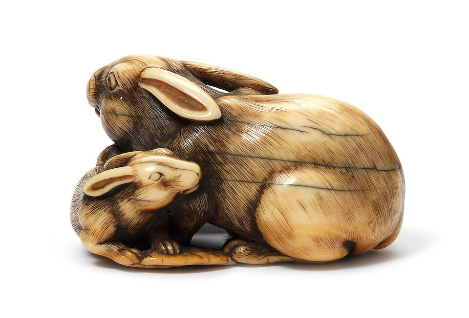 Bonhams An Ivory Netsuke Of A Hare And Two Leverets Attributed To Tomotada Kyoto Late 18th Century