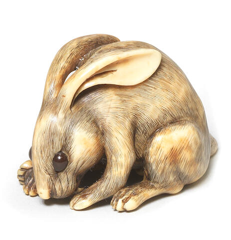 An Ivory Netsuke Of A Hare By Rantei Kyoto 19th Century Seated Its Head Turned Down To The Right As It Scratches Its Right Cheek W Netsuke Japanese Art Hare