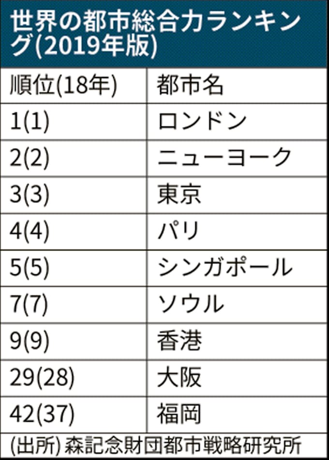 世界の都市ランク 大阪は29位 東京と差広がる 民間調査 日本経済新聞